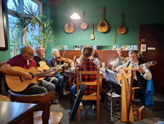 auf die Ohren und spielen am runden Tisch Songs & Tunes von diesseits und jenseits des Atlantiks. Und manchmal kommen auch externe Musikerinnen und Musiker hinzu - guests welcome!